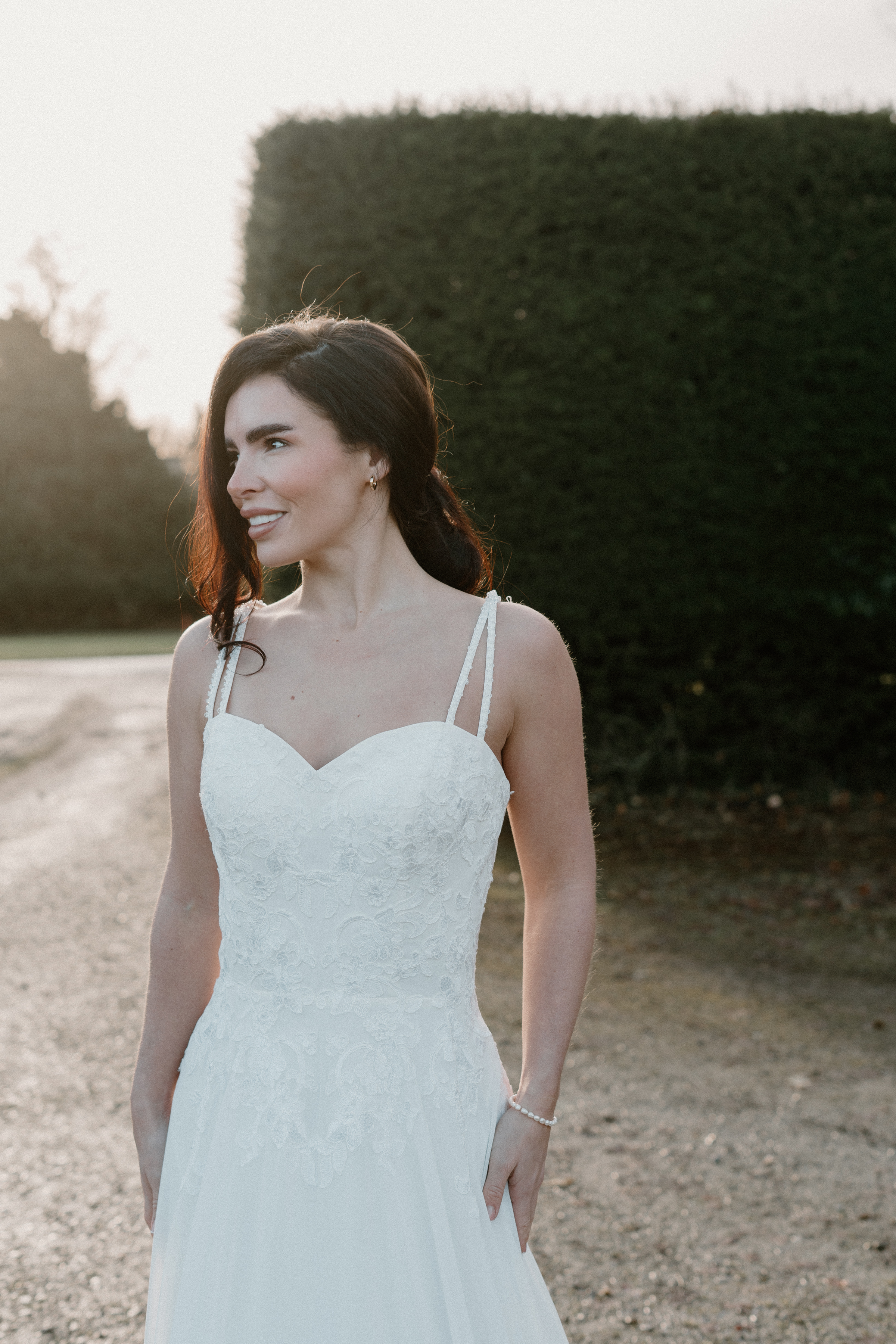 She is captivating. She is iconic. She is Venice. The gentle floral lace that pours onto the skirt is a traditional romantic design but when the bride spins the beaded criss cross back straps are sure to take everybody's breath away.. Whether your wedding day includes taking a stroll across the stunning Shambles of York or a moonlight river trip aboard a gondola in Italy... this dress is designed for you. Step into Venice...